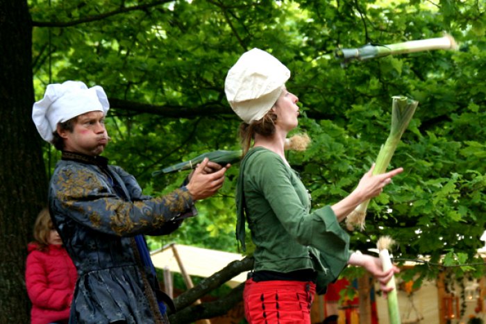 Erleben Sie ein artistisches Mitmachmärchen mit sieben Teller drehenden Zauberfeen, einer verzogenen Prinzessin namens Dornröschen, einer Diabolo drehenden Spinnerin, einem singenden und Messer schleudernden Küchenjungen, der gemeinsam mit seinem strengen russischen Chefkoch Lauch, Kartoffeln und anderen saisonbedingten Lebensmitteln jongliert, sowie einer akrobatisch biegsamen, reimenden und Dornen werfenden Rosenhecke, die den Mut eines freiwilligen Helden aus dem Publikum mächtig auf die Probe stellt!