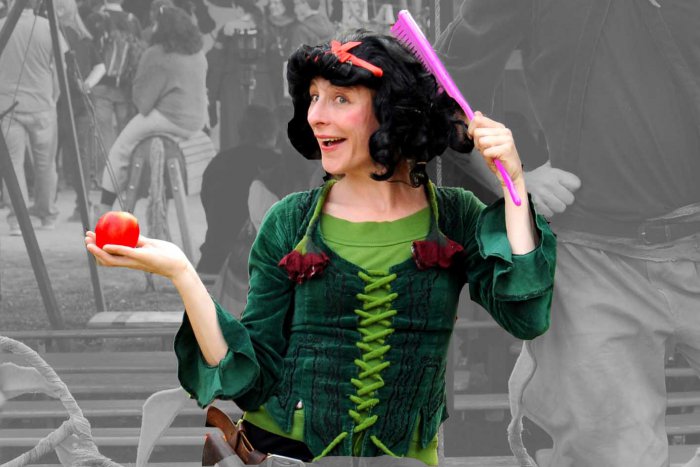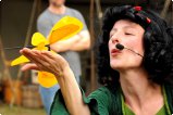 Der Dunkelwald steht Kopf! Zwei freche Elfen erschaffen gemeinsam mit dem Publikum eine rasante Geschichte um eine vom Neid besessene Königin, ihren düsteren Gehilfen, einen aufständischen Spiegel, zwei übrig gebliebene Zwerge und ein vom Glück verfolgtes Schneewittchen. Gefährliche Giftmischerei und fiese Intriegen halten das Publikum und die Elfen auf Trab, bis dann endlich der echte Märchenprinz vor der Tür steht.