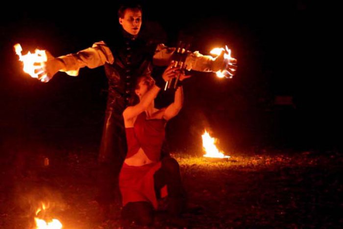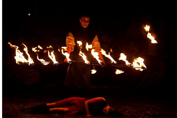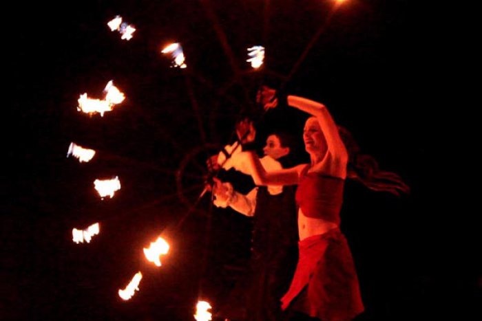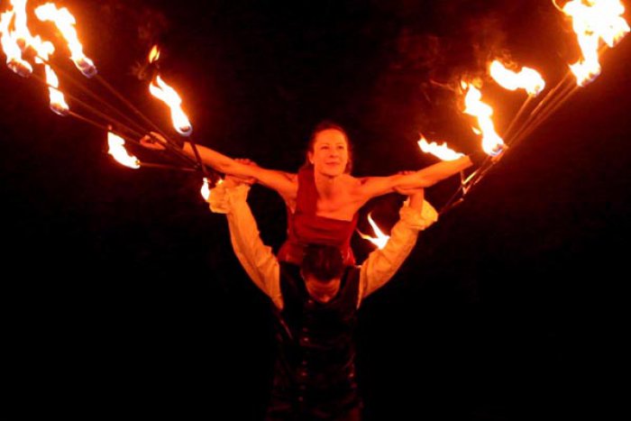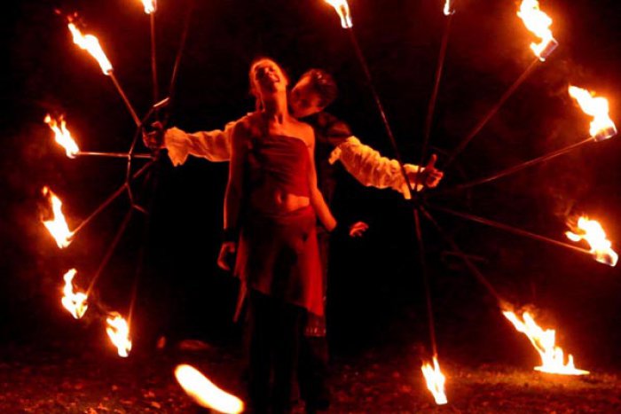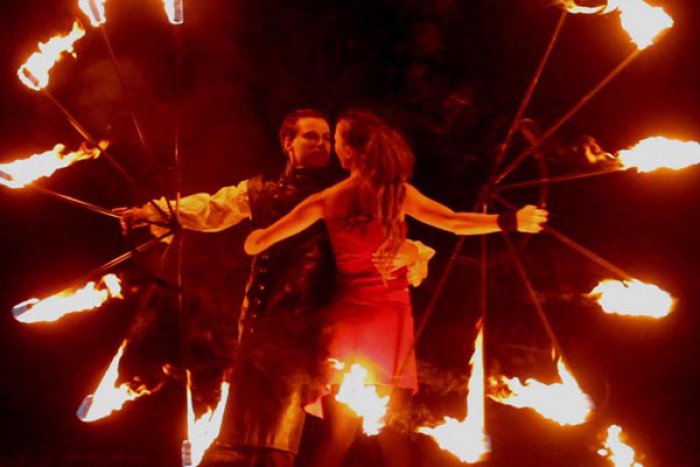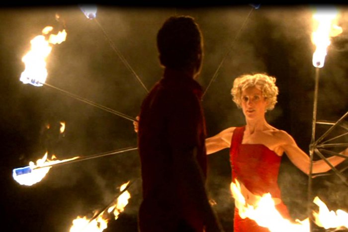 Da erscheint eine junge Frau in der Dunkelheit und beginnt ihr anmutiges Spiel mit dem Feuer. Blutgierig fordert er sie zum Tanz. Doch die Begegnung von Feuer und Tango erweckt in ihnen Sinnlichkeit und Temperament. Verführerisch durchtanzen ihre Körper ein immer größer werdendes Flammenmeer von Fackeln, Ketten und Feuerfächern,…