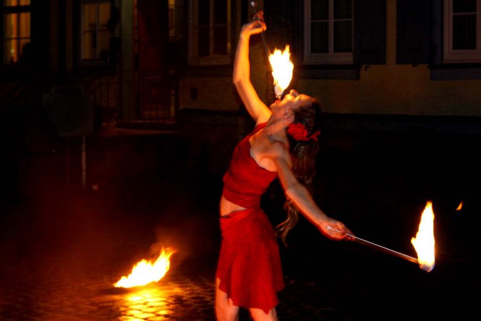 Und während wilde Flammen ihre tanzenden Körper umspielen, erweckt der Zauber des Tango schwingende Ketten, fliegende Fackeln und gewaltige Feuerfächer zu neuem Leben.