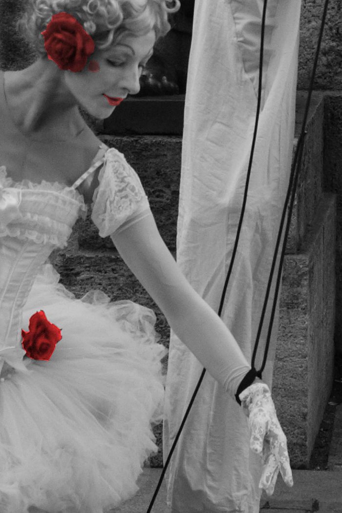 Violetta Marionetta und ihr Puppenspieler entführen die Gäste mit Ihrer eleganten Stelzenperformance in eine andere Welt.