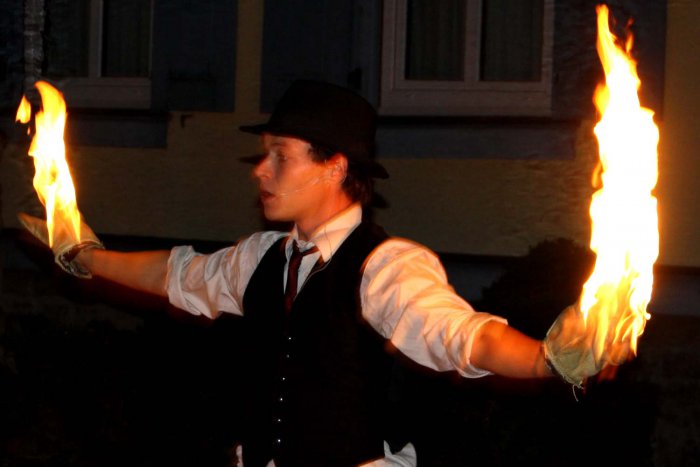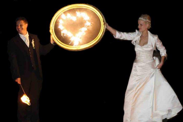 Zu späterer Stunde verzaubern wir mit der Kraft des Feuers: Das Feuertheater „Maria de Buenos Aires“ erzählt die Geschichte der Liebe mit romantischer Walzermusik, leidenschaftlichem Tango, Tanz und Feuerartistik. Höhepunkt der Show ist das von den Brautleuten selbst entzündete brennende Herz, welches das frisch getraute Paar auf einzigartige Weise in Szene setzt.